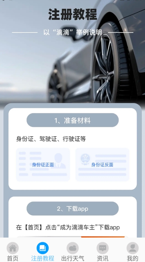 平台首页特别设置了滴滴顺风车主和高德顺风车主专属入口,方便不同来源的车主快速接入系统。针对新用户,app提供详细的注册指引和操作教程,即使是初次接触网约车的司机也能轻松上手。出行前,用户可通过内置的天气查询功能了解实时气象状况,为行程做好充分准备。此外,平台还设有资讯板块,持续更新网约车行业动态、政策法规等实用信息,帮助用户掌握最新资讯。