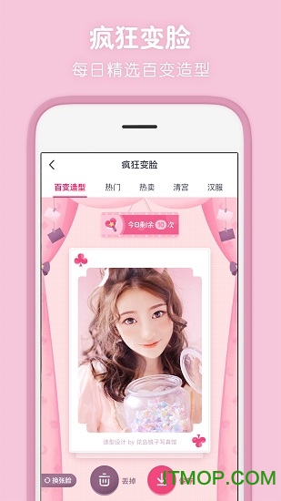 实时,丰富多样的换脸角色,媚娘妆、小学生照、军装照,让你一键秒变大明星。新增"3D变脸"技术,支持更生动的表情同步和光影融合。