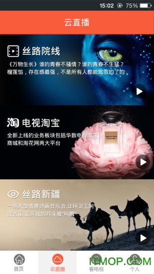 云直播,欣赏精彩院线大片请来<丝路院线>;边看电视边购物怎么能错过<丝路淘宝>!周边哪里好吃哪里好玩就来看看<丝路新疆>,生活要精彩还需云直播。云直播板块还提供4K超高清节目源,搭配智能硬件设备可获得影院级视听享受。用户可以通过弹幕互动功能与其他观众实时交流,分享观看心得。平台定期举办线上活动,参与互动还有机会赢取精美礼品。