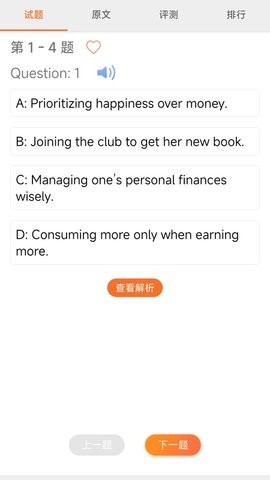 专业团队:研发团队包含语言学博士和资深考官,确保内容权威性。丰富材料:建立专业语料库,所有素材均经过难度分级处理。智能模式:采用机器学习技术,预测用户薄弱环节进行强化训练。个性化计划:支持设置每日学习提醒,培养良好学习习惯。详细解析:邀请阅卷老师录制解题视频,传授实战经验。语音识别:开发专属降噪算法,确保在嘈杂环境中也能准确识别。