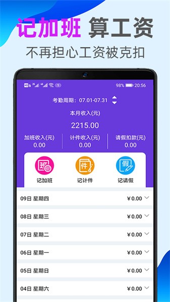 天天记加班是一款专为职场人士量身打造的加班记录与管理软件,旨在帮助用户高效管理加班时间、精准计算加班费用,并提供全面的数据分析功能。无论是个人用户还是团队管理者,都能通过这款软件轻松掌握加班情况,提升工作效率,同时确保加班记录的准确性和透明度。天天记加班凭借其强大的功能和人性化的设计,已成为众多职场人士不可或缺的得力助手。