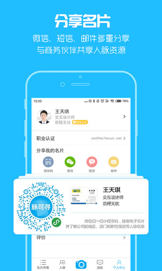 【自动备份名片,多手机同步使用】采用分布式云存储技术,支持跨平台实时同步,在手机更换或丢失时可通过加密通道快速恢复所有数据,彻底解决后顾之忧。