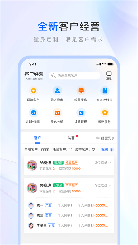 提供免费赠险等多样化客户经营工具,支持客户资料档案化管理,通过智能分析挖掘潜在需求,助力新客户开发。