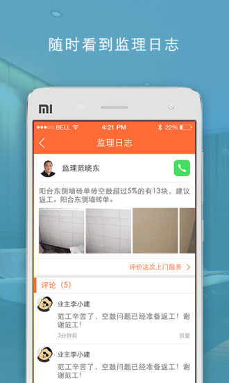 装修找监理,品质有保障!装小蜜app以互联网思维重塑家装监理服务,通过专业团队和标准化流程,为业主提供全方位的装修监督与管理。从预算审核到施工验收,从材料选择到工艺把关,装小蜜的监理专家将以第三方的中立立场,严格把控每个环节,确保装修质量达标、费用透明。我们深知装修的痛点与难点,因此特别设计了包括装修攻略、装修日志、装修预算等实用功能,帮助业主轻松应对装修过程中的各种挑战。