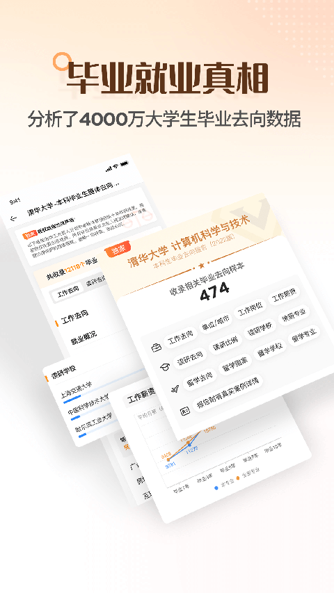 从就业前景、毕业薪酬、师兄师姐的去向、毕业后从事的行业、甚至行业男女比例等维度去了解专业的发展,不用担心毕业之后的就业问题。所有就业数据均来自权威渠道,定期更新确保信息时效性。