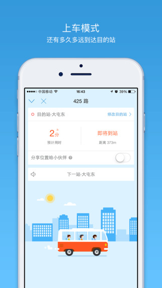 同路的出行朋友可以一起交流聊天,共享出行乘车实况信息,让旅途更加有趣。自由选择公交候车地点,一键切换公交行车方向,界面风格清新简约,操作简单易上手。实时将你的乘车轨迹分享给您的朋友或家人,确保出行安全。车来了app还成为地铁、公交出行小伙伴的吐槽和交流的聚集地,让用户在出行中不再孤单。