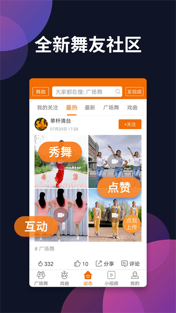 全新升级用户界面,操作更加简单直观。新增舞蹈社区功能,支持视频分享和点赞评论。优化视频加载速度,减少缓冲等待时间。增加个性化推荐算法,根据用户喜好智能推送内容。修复已知bug,提升系统稳定性,为用户带来更流畅的使用体验。