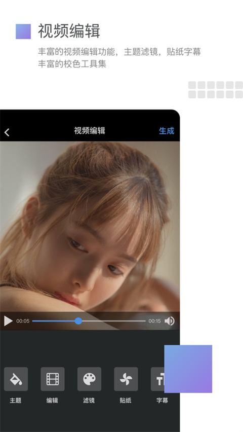 美摄ios版内置上百种精美视频主题,从三维效果到照片相册,从炫酷拼接到清新简约,总有一款适合你的风格。你可以通过这些主题,轻松将日常生活影像打造成电影大片般的质感。软件还提供丰富的音乐库和字幕功能,让你的视频作品更加生动有趣。