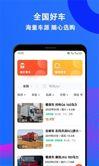 车源搜索:简单便捷的操作搜索您想要的货车车型。支持多条件筛选和地图定位,让您轻松找到附近或特定区域的优质车源。
