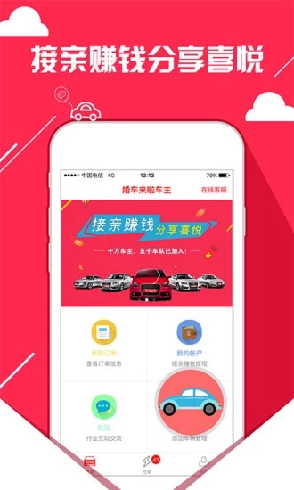 婚车来啦车主端持续创新,致力于为车主提供更优质的服务体验。无论您是希望利用空闲时间增加收入,还是专业从事婚车租赁服务,婚车来啦都是您的最佳选择。立即下载体验,开启您的婚车共享之旅!