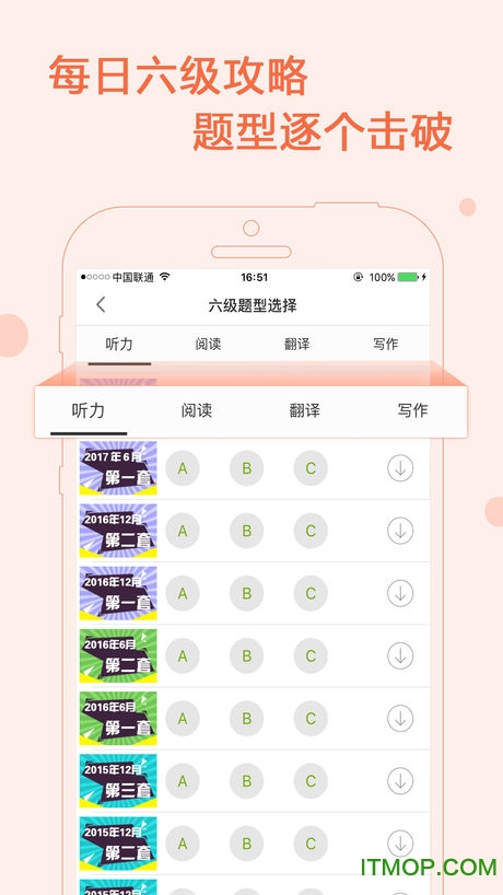 这是一款真正为六级考生量身定制的学习神器,涵盖了从基础词汇到高阶应试技巧的所有内容。我们深知备考六级的痛点,因此特别设计了智能记忆曲线、错题本等实用功能,确保每个知识点都能牢固掌握。无论你是零基础起步还是想冲击高分,这里都能满足你的学习需求。