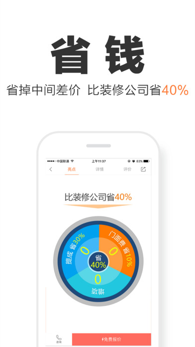 【极致省钱】通过互联网模式革新传统装修行业,直接对接材料供应商和施工团队,去除中间环节,报价透明公开,整体费用比传统装修公司节省40%以上,真正打破行业暴利。