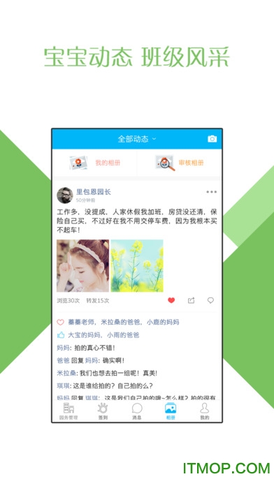 校园动态:园丁随时随地了解园所新闻动态、通知发布、活动报名均可掌控手中!系统支持图文并茂的内容展示,可自定义推送对象,确保信息精准传达。同时提供数据统计功能,方便园所了解家长阅读情况。