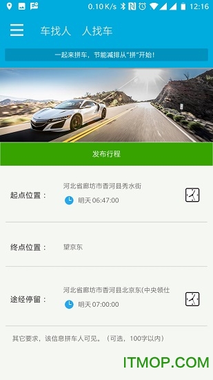 一起来拼车是一款革新性的出行软件,专为解决现代人出行难题而设计。在众多打车平台中,它凭借独特的拼车模式和优质服务脱颖而出。通过智能匹配系统,用户能快速找到同路线的伙伴,不仅大幅降低出行成本,还能结识新朋友。无论是日常通勤、商务出差还是长途旅行,这款应用都能提供高效便捷的解决方案。其创新的信用体系确保每次拼车都安全可靠,让您的每一段旅程都充满安心与乐趣。
