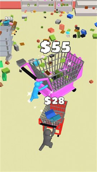 《疯狂购物车免费版》是一款以恶搞和破坏为核心的休闲游戏,为玩家提供了一个无拘无束的减压空间。在游戏中,你将化身为一名“购物狂魔”,驾驶购物车在商场中横冲直撞,利用加速道具和物理惯性制造混乱。无论是撞飞货架上的商品,还是将其他顾客“送”上天空,都能带来爆笑的视觉效果。游戏没有繁琐的规则或任务限制,玩家可以完全按照自己的节奏享受破坏的乐趣。逼真的物理引擎和夸张的碰撞特效,让每一次撞击都充满惊喜,绝对是释放压力的绝佳选择!