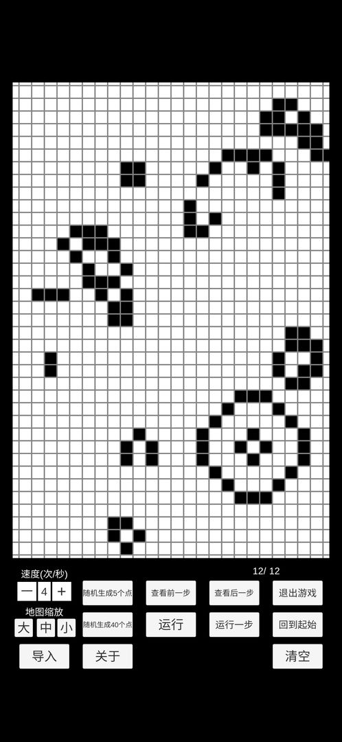 细胞状态设置:玩家可以自定义初始细胞状态,设计不同的图案和布局。