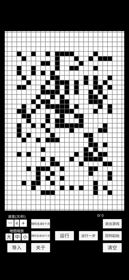 演化控制:玩家可以控制游戏的演化速度,暂停、继续或重置游戏。