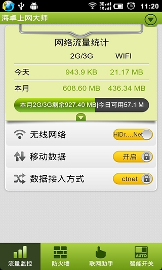 海卓上网大师是海卓科技专为Android用户打造的智能上网管家,集流量监控、网络管理和防火墙功能于一体。作为海卓HiAPN和海卓冲浪的升级版本,它不仅继承了前代产品的核心功能,还新增多项创新特性。这款应用能精准统计每日/月度流量使用情况,提供直观的柱状图和套餐进度条,并首创WIFI时长统计功能。其强大的网络防火墙可区分应用流量使用,而独创的免ROOT白名单模式更是为用户提供了便捷的网络管控方案。无论是日常流量管理还是复杂的网络设置,海卓上网大师都能为用户带来专业、智能的使用体验。