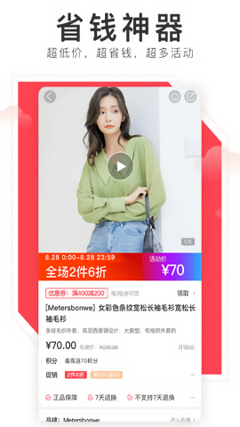 与各大品牌官方合作,确保商品来源正规可靠,平台商品与品牌官网同步更新。2、每日定时上新海量商品,紧跟时尚潮流,为用户提供最新最潮的购物选择。3、支持全国范围内配送,提供送货上门服务,部分城市还支持极速达服务。4、实时同步品牌官方活动信息,确保用户不错过任何优惠机会。5、开通商品上新提醒功能,用户可设置关注品牌或品类,第一时间获取新品上架通知。6、提供完善的售后服务保障,包括7天无理由退换货等政策,让用户购物无忧。