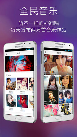支持QQ账号和新浪微博账号直接登录,无需注册,支持歌手、拼音歌曲等形式的歌曲,并将作品同步分享到微博或QQ空间,让好友可以欣赏作品,分享音乐快乐。