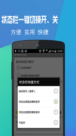 快捷栏一键开/关护眼灯:在通知栏设置快捷开关,无需进入应用即可快速切换护眼模式,操作简单便捷。