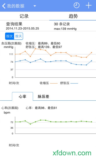【血压记录】:支持多种方式录入血压数据,操作简单便捷,数据永久保存。