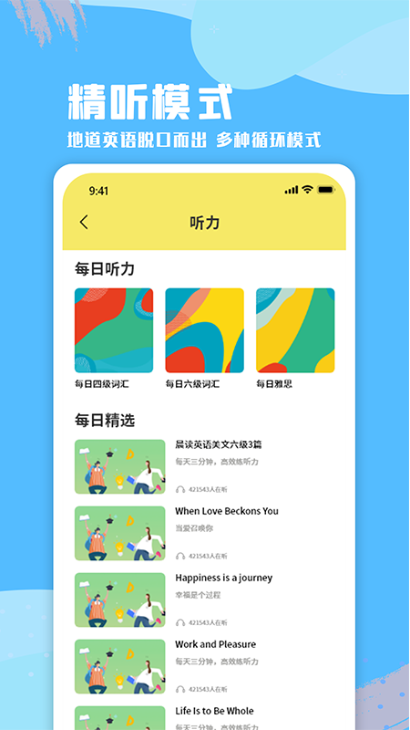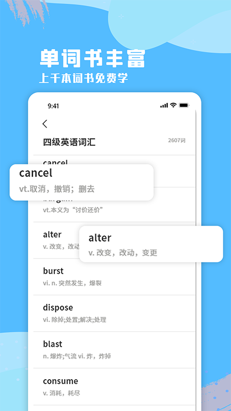 海量内容:app内汇集了上万条精选学习资源,包括生动有趣的英语故事、系统分级的一到十二级词汇库,以及专门针对四、六、八级考试的词汇宝典。所有内容都经过专业教研团队精心编排,确保学习效果。