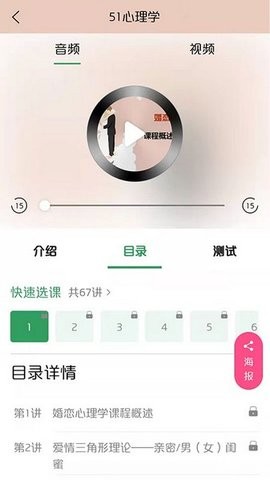 轻松快速学习:每天三分钟搞定心理学。应用采用微课设计理念,将复杂知识拆解为3-5分钟的短视频,充分利用碎片时间。特别设计的"每日一学"功能,会在固定时间推送一个心理学小知识,培养持续学习习惯。