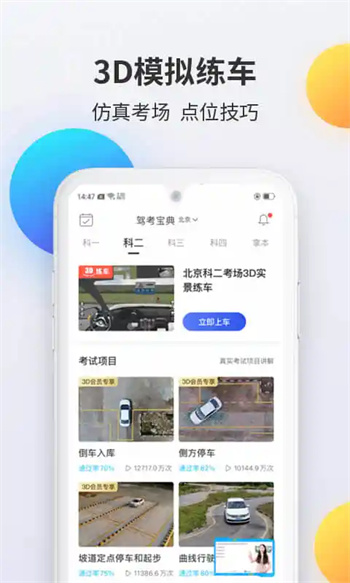 视频讲解:3D动画演示配合真人讲解,直观展示各项驾驶操作的要领和评分标准。