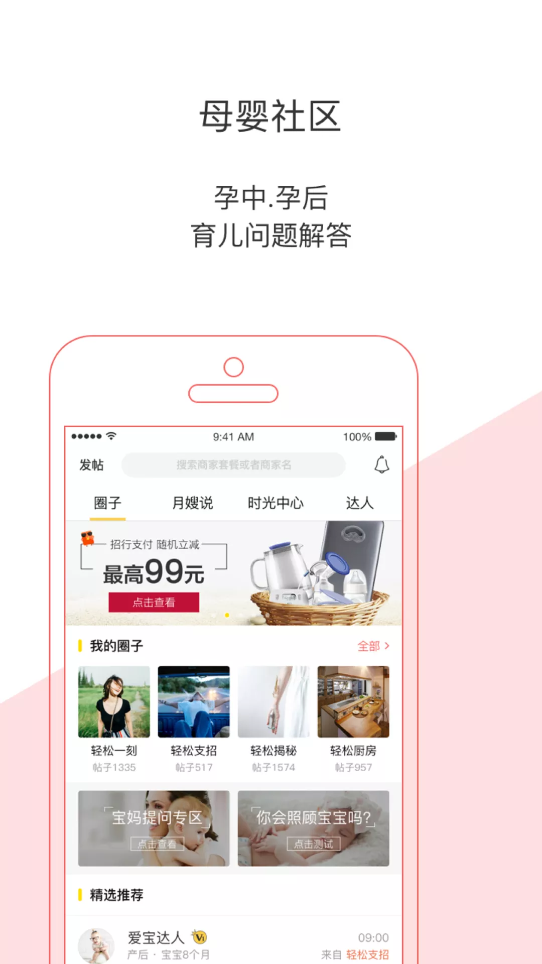 母婴商城:汇集各类母婴用品,从孕期营养品、新生儿用品到产后修复产品一应俱全,更有专业摄影、婴儿游泳、月子会所等配套服务。