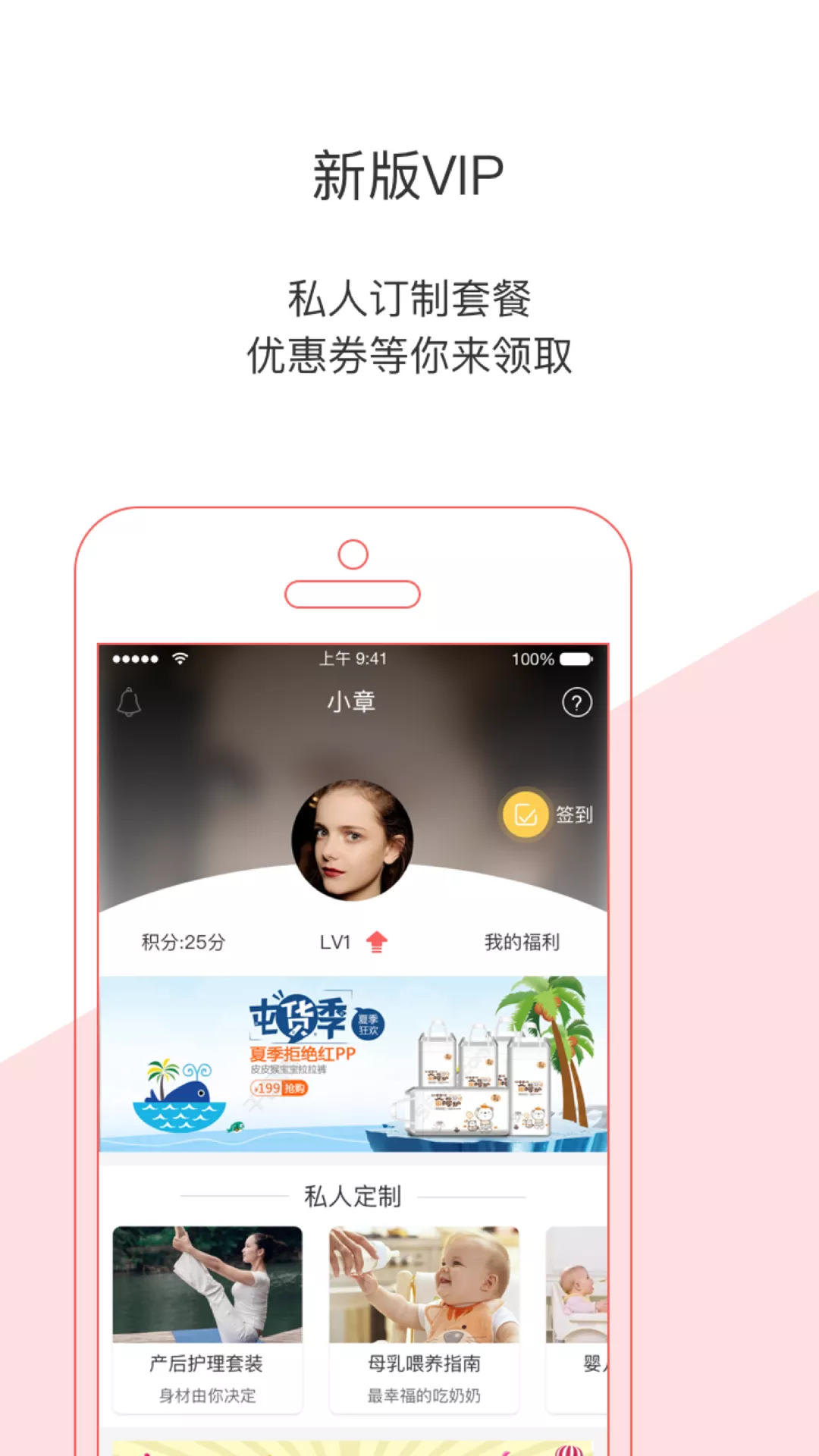 VIP特权:开通VIP可享受专属优惠,积分商城提供丰富母婴好礼兑换,精选优质母婴产品随心挑选。
