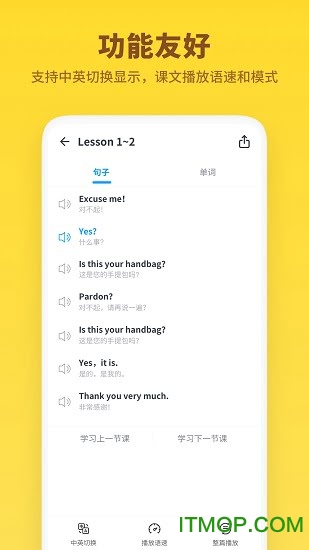 逐句精听:可调节语速并显示实时波形图对比发音,新增方言发音矫正功能