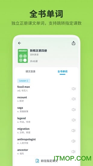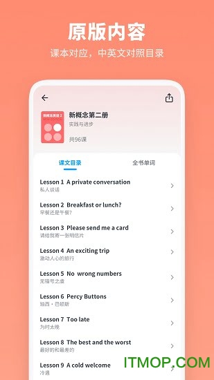 原声语音库:BBC专业播音员录制所有课文及单词发音,包含英音美音自由切换功能