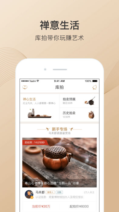 《库拍》的最大亮点在于其创新的拍卖模式和丰富的艺术资源。首先,平台独创的"分享式拍卖"模式让每个缴纳了保证金的竞拍人在每次出价时都能获得一定比例的佣金回报,这种激励机制大大增加了竞拍的趣味性和参与度。其次,平台为每件拍品都提供了详尽的背景资料和专业评价,为竞拍人提供有价值的参考信息。第三,《库拍》汇聚了众多资深收藏家和艺术专家,他们会对拍品进行专业鉴定和评价,确保艺术品的真实性和收藏价值。最后,平台还提供丰富的艺术资讯和交流社区,让用户在参与拍卖的同时,也能不断提升艺术修养和鉴赏能力。
