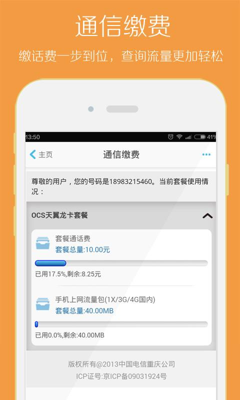 手机充值:电信手机账单查询、话费充值、流量办理,随时随地畅享充值缴费优惠活动。支持多种支付方式,充值到账速度快,还有会员专属折扣。