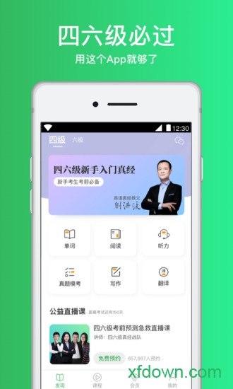 四六级必过app是一款专为大学生量身打造的英语四六级考试备考神器,它集真题训练、智能学习、视频课程于一体,帮助用户高效备考,轻松通过考试。无论你是英语基础薄弱还是想冲刺高分,这款app都能为你提供全方位的支持,让你在四六级考场上游刃有余。
