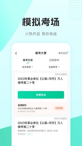 全真模拟考试:精心设计的在线模考系统高度还原真实考场环境,包括计时、评分、排名等功能,帮助考生提前适应考试节奏,有效缓解考试焦虑。