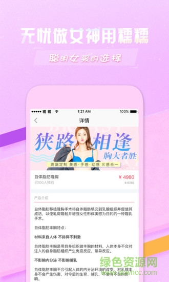 糯糯微整手机版是一款专为女性用户打造的微整形综合服务平台,集资讯获取、医院筛选、特价抢购、分期支付等功能于一体。作为国内领先的医美信息平台,我们致力于为用户提供安全、便捷、高性价比的微整形体验,让每位爱美人士都能轻松实现变美梦想。