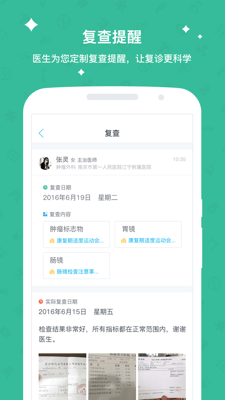 【科学复诊规划】医生可根据患者具体情况设置智能复查提醒,帮助患者合理安排复诊时间,确保治疗连续性;