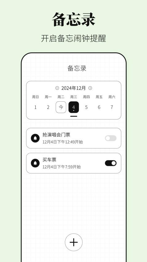 以后就能够让用户进行备忘管理,而且你还可以设置每天的闹钟提醒。闹钟支持工作日和节假日智能区分,自动跳过法定节假日,让您的作息更加科学合理。