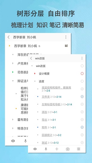 思事日程记事app特别注重移动端使用体验,让您随时随地都能享受便捷高效的管理服务。通过云端备份和多终端同步功能,您可以在不同设备间无缝切换,Windows端还支持多种格式的自由导出。软件提供多种便捷的记录方式:一键语音输入可自动识别时间和设置提醒,拍照和文字识别功能让信息录入更加轻松。独特的树形结构支持无限分层和自由排序,帮助您将复杂的计划、知识和想法分解成清晰直观的体系。