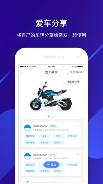 车况监测:提供精准电量显示、智能续航预估、实时车辆定位、全面车身状态检测、详细骑行轨迹记录等功能,让您对爱车状况了如指掌;