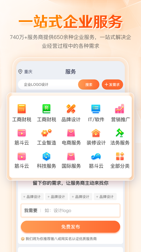 整合740万+优质服务商资源,提供650余种专业服务,一站式解决企业经营需求;
