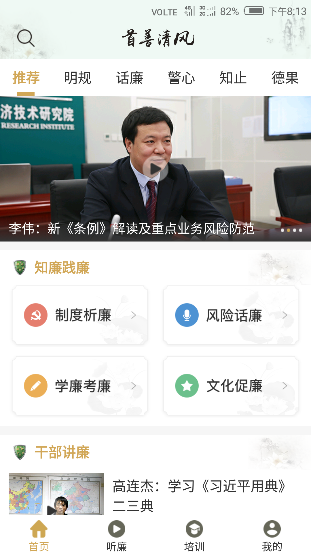 "培训"模块采用分类教学、定期更新的方式,提供"点对点"的个性化学习服务。该模块根据用户需求定制培训内容,通过系统化的课程体系,循序渐进地提升用户的廉洁意识和专业素养。