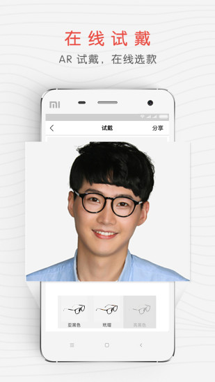 轻松选款!只需手机拍摄照片,即可试戴各种款式眼镜的效果,选出最适合您的眼镜!分享试戴照片,好玩又炫酷!系统支持多角度试戴展示,还能模拟不同光线下的佩戴效果。新增的虚拟试妆功能可以搭配不同妆容,让您看到最真实的佩戴效果。