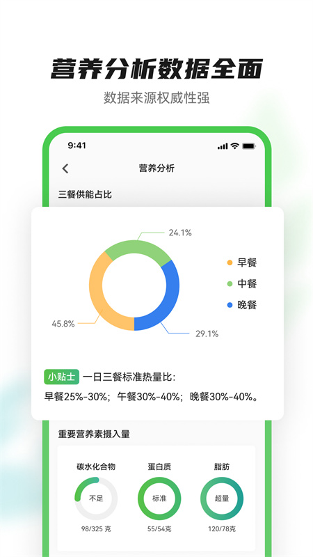 拥有智能化的饮食记录功能,支持语音输入、拍照识别和手动记录三种方式。系统会自动识别食物种类和分量,准确计算营养成分。记录完成后会生成详细的营养分析报告,帮助用户了解每餐的营养构成。