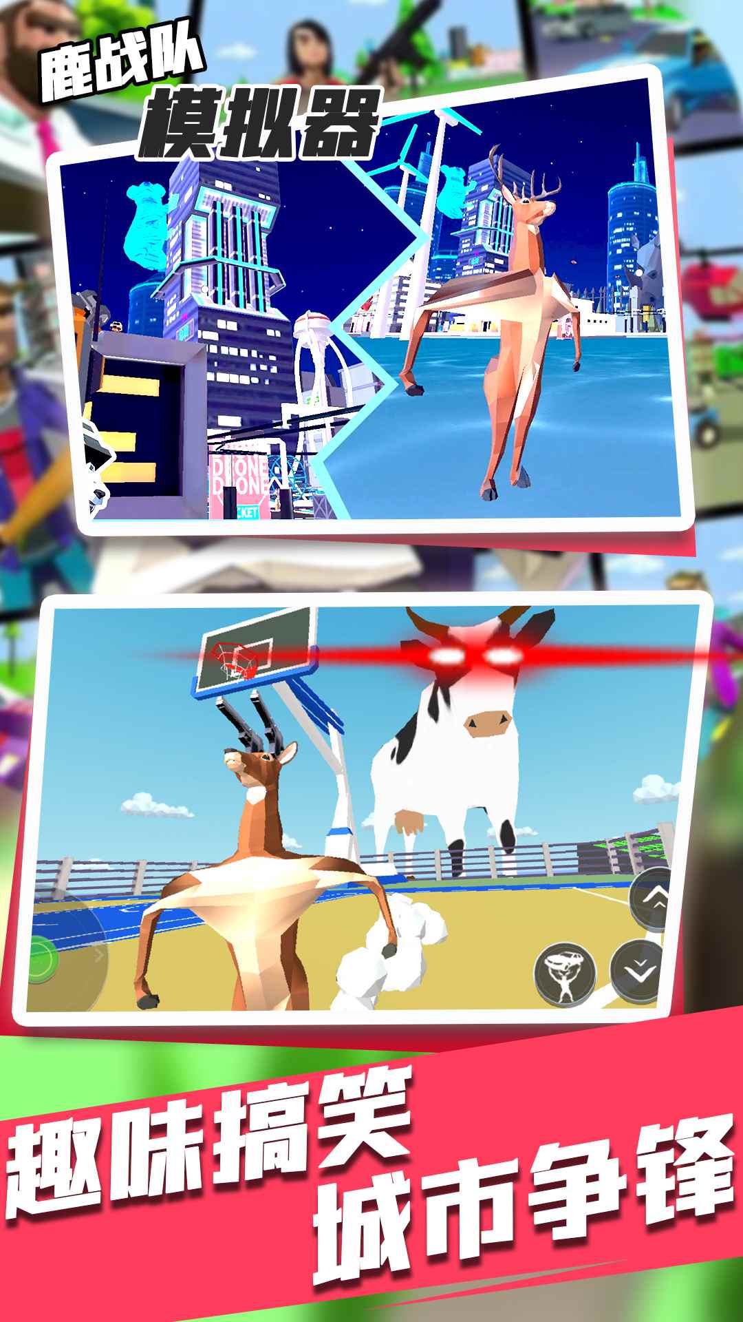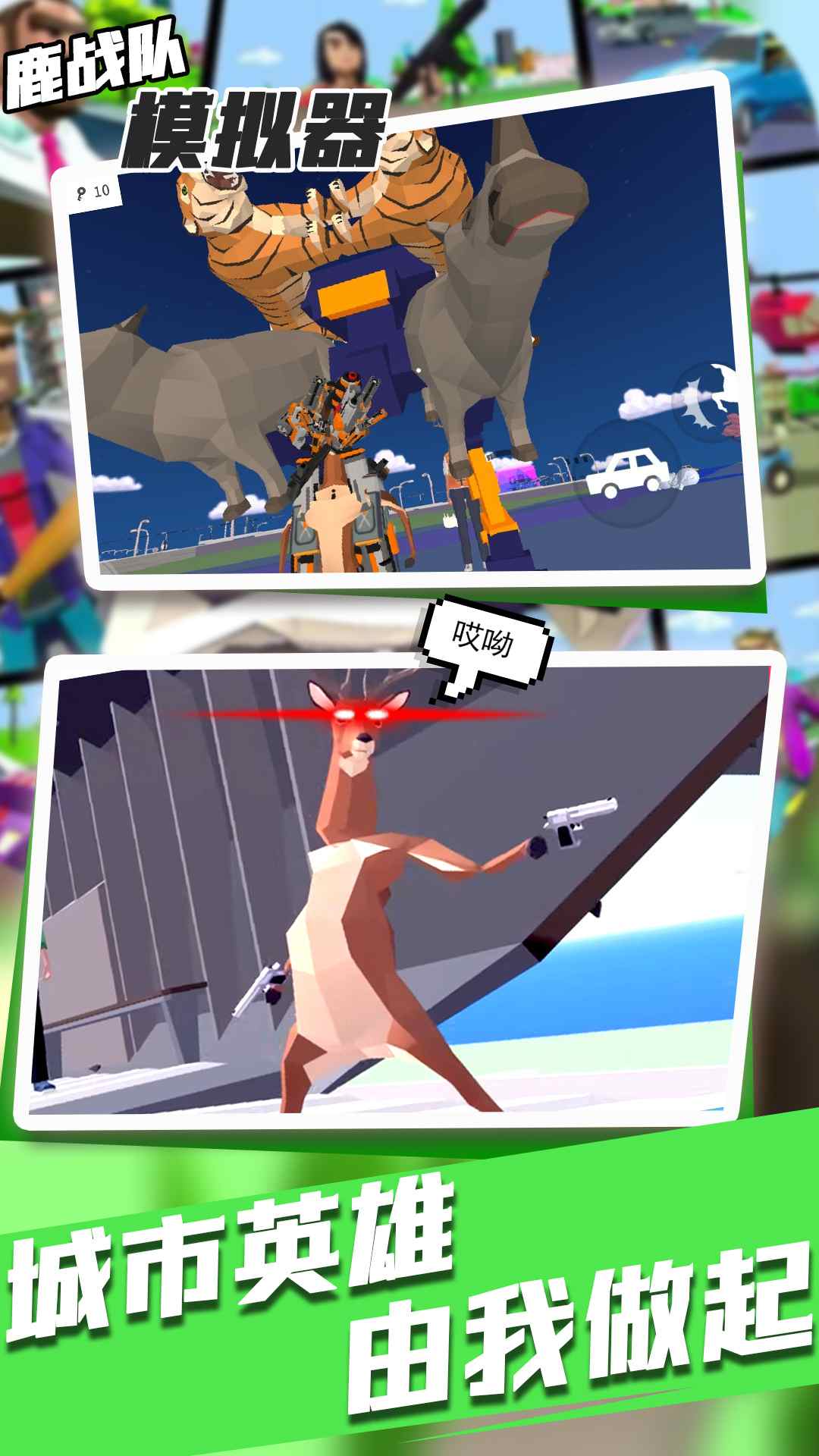 鹿战队是一款充满创意与欢乐的3D模拟角色扮演冒险游戏,它将带你进入一个颠覆传统的鹿世界。在这款游戏中,你将不再扮演温顺的食草动物,而是化身为一只拥有非凡能力的鹿。你的鹿角不仅是装饰,更是强大的武器,可以用来撞击敌人,甚至还能施展特殊能力控制人类。想象一下,驾驶汽车在城市中横冲直撞,让人类在你的力量面前瑟瑟发抖,这种前所未有的体验绝对会让你大呼过瘾!