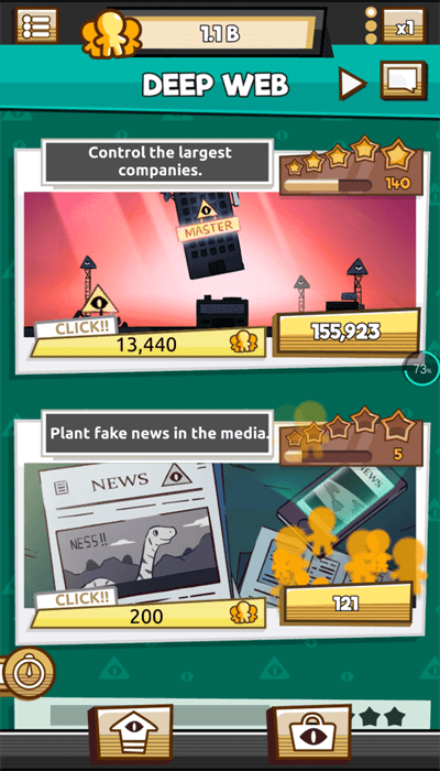 在这个光照会模拟器点击器中,有一个惊人的广泛的途径来统治世界。从基层传教到高层操控,游戏提供了完整的权力晋升体系。