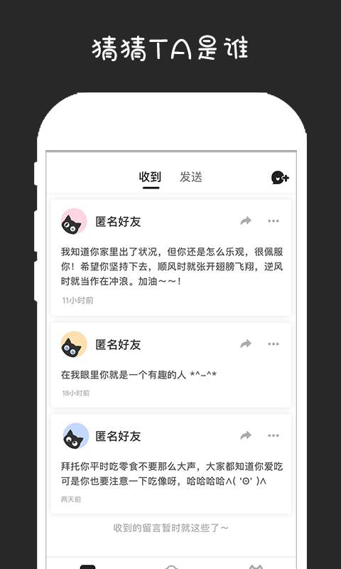 【收到匿名留言】当收到好友的匿名真心话时,猜谜游戏就开始了!平台精心设计的线索提示系统,既能保持神秘感,又能让接收者通过蛛丝马迹享受推理的乐趣。