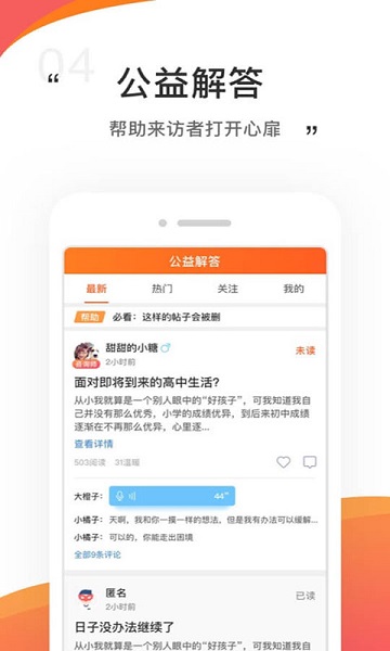 情说专家版是专为心理咨询行业从业者设计的专业服务平台,它不仅是一个工具,更是传递温暖与正能量的桥梁。在这里,您可以分享专业知识,帮助来访者打开心扉,开启心灵对话。从查收第一条消息开始,您将见证来访者逐步成长的每一个重要时刻。平台采用智能化消息管理系统,确保您能及时响应来访需求,让专业咨询随时随地进行。
